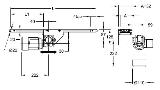 - Position réglable de l’entraînement : La position de l’entraînement peut être ajustée le long du profilé selon les besoins spécifiques de l’application. Cela offre une flexibilité supplémentaire lors de l’installation et de l’optimisation du convoyeur.